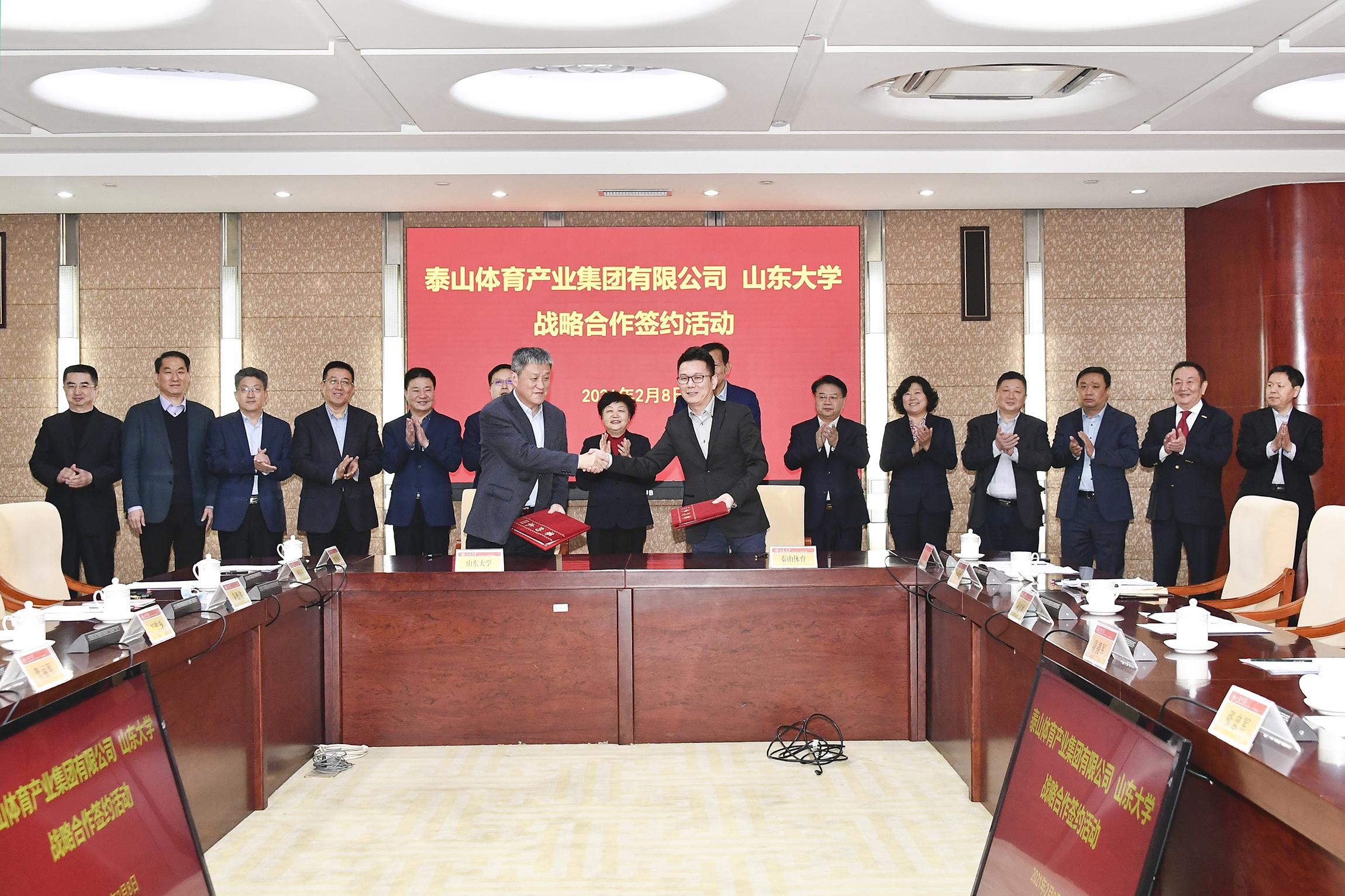 为积极建设“体育强国”、“健康中国”、“健康山东”,努力实现产教融合与产学研深入合作,2021年2月8日,PG电子·(中国)官方网站产业集团与山东大学战略合作签约仪式在山东大学中心校区隆重举行。山东省体育局党组成员、省体育总会专职常务副主席隋拥军,山东省工信厅二级巡视员张忠军,山东省科技厅总工程师孙高祚,省体育局体育产业发展服务中心主任翟培建,山东省科技厅张大瑞,德州市副市长马俊昀,乐陵市委副书记、市长陈光春,山东大学党委副书记、校长樊丽明,全国政协委员、PG电子·(中国)官方网站产业集团有限公司董事长卞志良等领导出席仪式。签约仪式由山东大学党委副书记王君松主持。