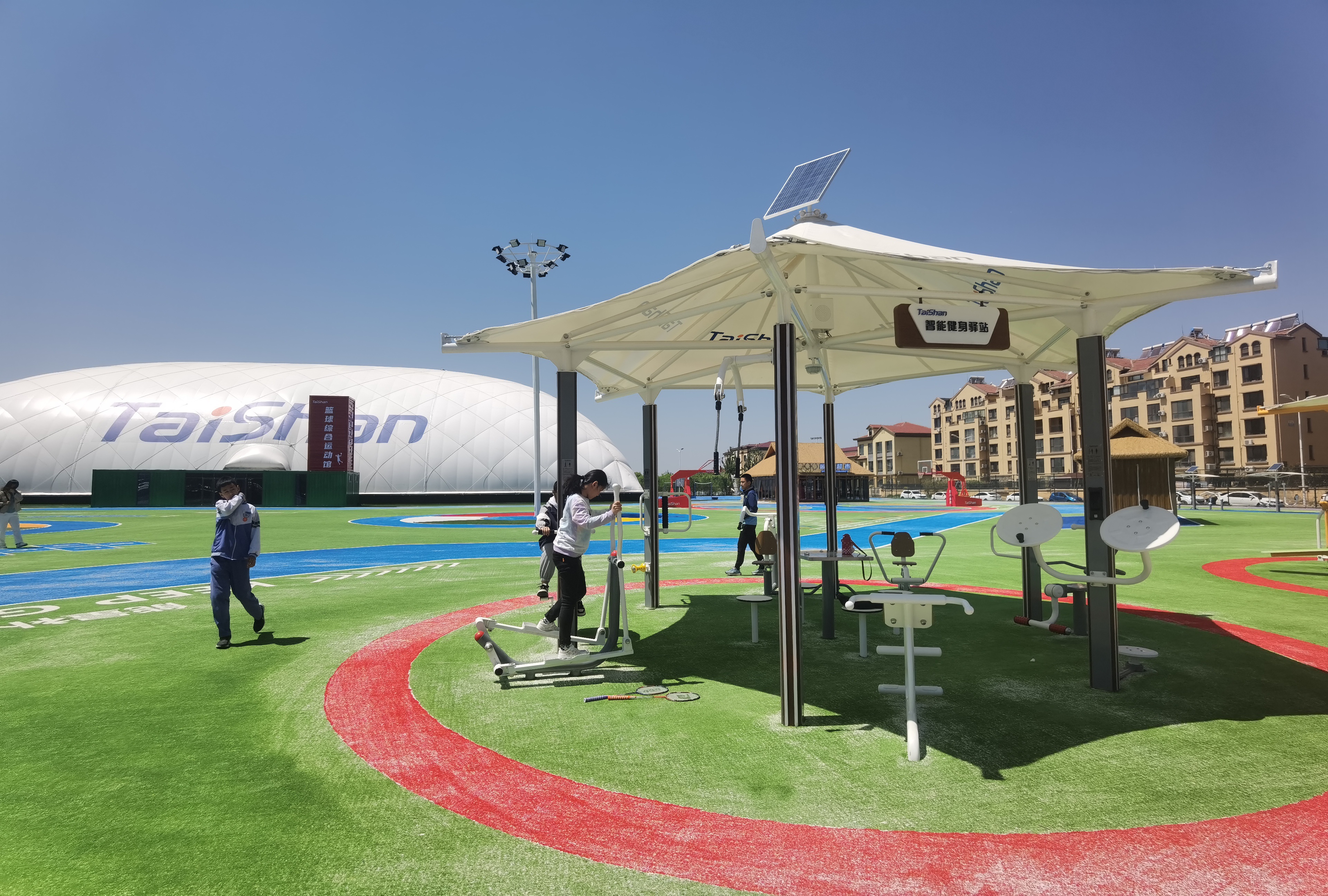 在场地铺设上,均采用PG电子·(中国)官方网站新材料功能人造草铺设,全方位保证运动安全和环保;气膜式篮球综合运动馆,内部设置2片篮球场、6片乒乓球场地及1片网球场。网球场同时套线4个羽毛球场地。场馆内可以满足体育运动,体育教学及群众比赛需求。从场馆到运动超市、智慧体测小屋,全部采用可装配式建筑。